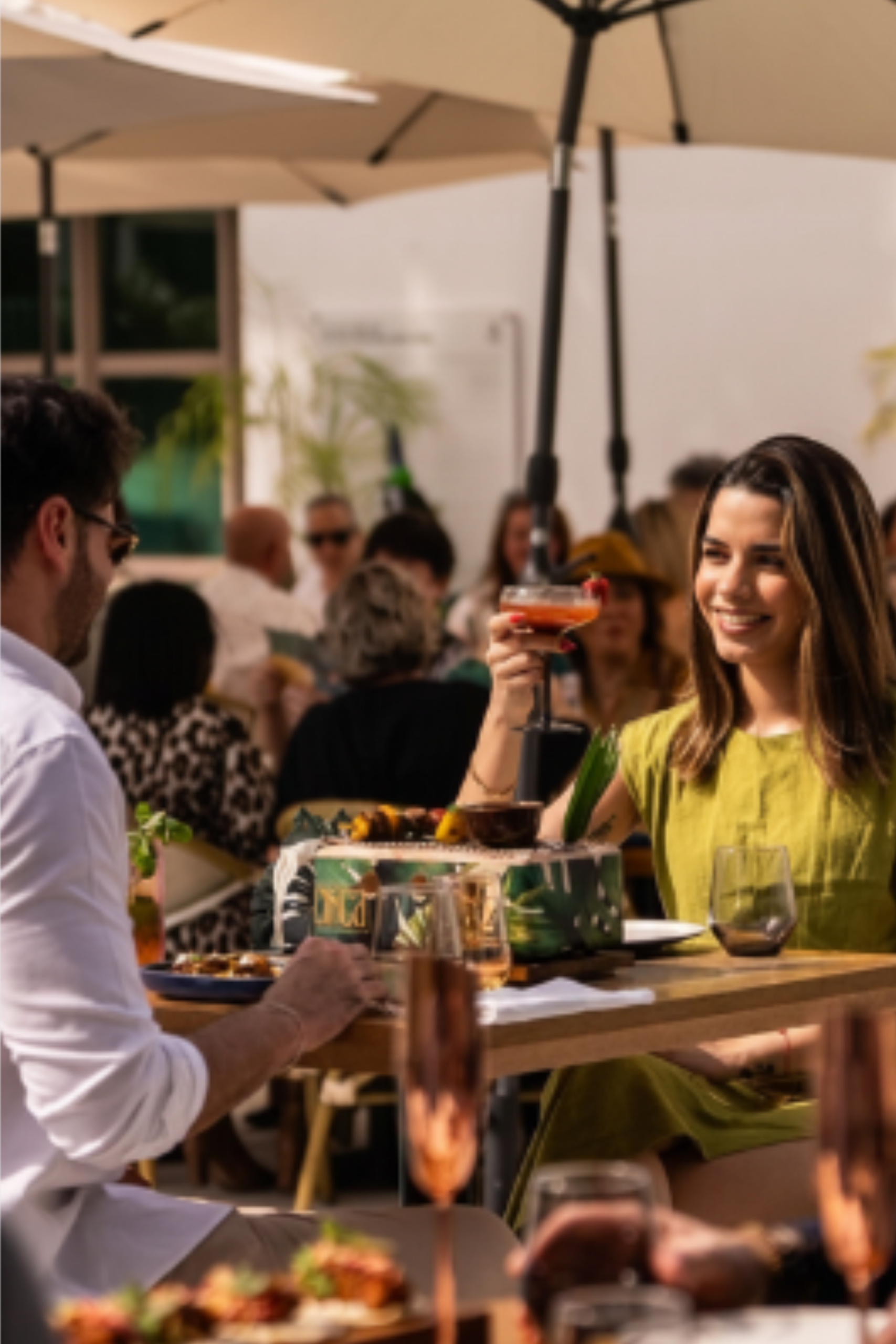 Tropical calm meets Latin colour. Sun-dappled seating, breezy bites, and cocktails served with a wink. Perfect for leisurely lunches or stylish afternoons under the palms.